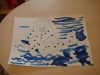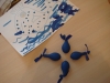 А вот наше совместное творчество. Я нарисовала Синего Кита, а Ян при помощи пластилина его точечно разукрашивал, прижимая маленькие кусочки Синего пластилина своими пальчиками. А потом мы здесь же рисовали Синее Море. На фотографиях также видны наши Синие Шарики с различными крупами, фасолью. Ян их и жмякал и кусал и пытался надуть!!!!! Но к ним интерес потом почему-то пропал, и сейчас, предлагая ему их, он неохотно играется.
