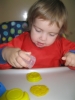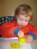 лепить мы очень любим...но сейчас пока это значит, что мы мнем, рвем, пробуем катать колбаски и колобки....занимаемся по многоразовому альбому "Гений с пеленок"