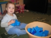 Мне очень понравилась игра от "Азбуки ума" с сортером про тазик в другом конце комнате..Машенька-очень усидчивая и дома она бегает и прыгает не часто...поэтому благодаря такой игре мы совместили закрепление цвета и физическую активность..в одном конце комнаты сидела я с разноцветным конструктором ,а вдругом конце комнаты стоял пластмассовый тазик... Маша выбирала синие детальки из всего количества конструктора и бежала к тазику...бросала в тазик с грохотом конструктор и бегом возвращалась... так она перетаскала весь синий конструктор...потом притянула ко мне тазик и мы весело погремели пластмассовым конструкторо в пластмассовом тазу...было громко и весело) а затем мы построили из конструктора башню..для синего мы брали и голубые детали - я параллельно объясняла про оттенки - светло-синий (голубой) и синий