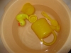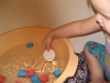 1. Игра с тазиком и порезанными губками нас увлекла минут на 40...было бы и больше, но Машка начинала охлаждаться - вода таки попала и на нее в активной игре...мы ловили кусочки губки ложкой обычной, ложкой большой, чайной ложкой...простой крышкой от баночки из-под детского питания...да и просто руками)Счастью не было предела...а потом я принесла две пустые баночки и мы воду переливали туда-сюда, кусочки губок перекладывали -считали параллельно,сколько там синих и сколько красных)))а потом собрали с полок в ванной все свое желтое богатство)))в общем, занятий много нашли)))