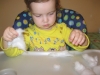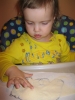 И медведя вчера делали...Сначала Машка сыпала манку на медведя ручками аккуратно, ну а потом решила, чтов сю миску высыпать проще будет