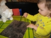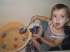 ну и наши вчерашние попытки от Азбуки ума)))коробку волшебную еще раз разобрали-собрали...действительно, половина ей еще интересна - цвета, материал...а потом уже приходилось привлекать внимание...потому как вату нашли и ее разделяли на маленькие кусочки)))