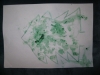 3. Рисовали зеленой краской - с помощью кисточки..Я увиела в рисунке елку) Если будет настроение, доклеим из ваты снег для елки и дорисуем новогодние шары пальчиком