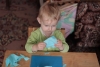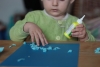 Делали мы синего кита. Алеське понравилось отрывать кусочки пластилина, правда сначала она бросала все на пол, пока поняла, что нужно все лепить на бумагу