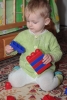Играли мы с конструктором и с мозаикой. Строили башни из двух цветом, но больше всего нравилось их разрушать. Делали узоры с чередованием двух цветов, сортировали в две "кучки" и конечно все комментировала: "Это красный кубик, деталь, а это синий....". Потом начались у нас игры "кто дальше бросит", "кто куда попадет" (в процессе игры никто и ничто не пострадало