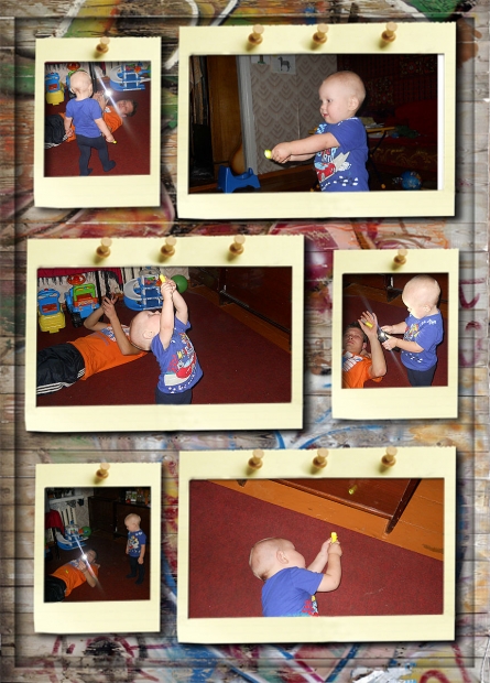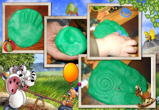 Потом у нас была лепка. Богдаше очень нравится лепить, поэтому он это делает по несколько раз на день. Лепили они с папой. В этот раз они делали отпечатки рук, разных артефактов и даже носика!