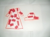 И принялись за работу. В результате у нас получилось шикарное платье с красным узором и шляпка в тон платью.