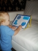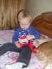 А теперь о том как мы играли с лентой, изучая красный цвет. Честно признаться надолго ребенка не хватило, Ромке больше понравилось прятать ленту в коробочку и говорить при этом "А где ку-ку?". Зато потом мы весело поиграли с котом, который стремительно носился за красной лентой. В результате и кот и Рома остались довольны!