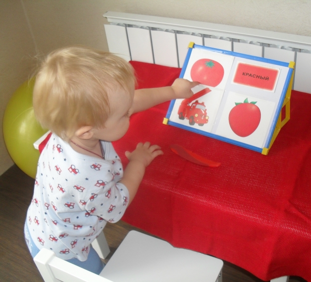 Наше знакомство с красным цветом началось с "доски знаний", которая всю неделю стояла на рабочем столе Ромки. Я отобрала карточки с картинками предметов красного цвета и приклеила их к доске. Периодически спрашивала у Ромки "покажи где машина красного цвета?", а "где красная клубника?"...Сыночек всегда с радостью находил нужный предмет.