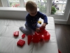 После обеденного сна мы с сыночком исследовали мир с помощью горки и различных предметов красного цвета. В результате поставленного эксперимента узнали, что быстрее всех скатились с горки красная машинка и мячик, а самый медленный оказался красный кубик. Эта игра надолго увлекла моего непоседу и очень понравилась нам обоим! Играя в эту игру, мы попутно узнали о размерах красных кубиков(большой и маленький).