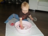 А потом мы лепили) Выбрали конечно же тесто красного цвета. С помощью формочек у Ромки получилась лягушка, пчелка и т..д. А потом мы делали красных червячков. Правда, наш аппарат по производству Города Червяков не выдержал такого напора (треснула насадка)