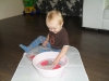 Больше всего Ромке понравилось ловить красные рыбки!!! Ромка ловко ловил их ситечком, потом перекладывал их руками в другую мисочку, выжимал губки... Эта игра растянулась у нас надолго)