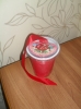 А вечером мы с сыночком сделали фонарик из баночки. Украсили баночку красными сердечками и квадратами, а я перевязала ее красной лентой. Когда зажгли свечу и выключили свет, ребенок восторженно кричал "Во-Во!!!" и показывал пальчиком на фонарик. А еще фонарик оказался очень полезным, он стал освещать путь возле красного замка.