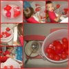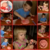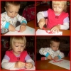 Сегодня мы лепили из соленого теста красного цвета. Тесто я делаю по следующему рецепту: 1 ст. соли, ¾ ст. теплой воды, 1 ст.л. подсолнечного масла, 2 ст. муки; соль залить теплой водой, помешать, чтобы соль немного растворилась, добавить масло и муку; хранить тесто можно в холодильнике. Для цвета я добавила красную краску гуашь. Мои малыши обожают лепить из теста, вот и сегодня это занятие увлекло их на 1,5 часа. Мы катали колбаски и колобки, делали лепешки и вырезали с помощью разных формочек фигурки, отщипывали кусочки, делали червячков, пропуская тесто через чесночный пресс (особенно это понравилось Настюше). Я сделала отпечаток Настюшкиной ладошки, когда подсохнет раскрашу красками. На синей неделе планирую сделать Кирюшкины отпечатки, у нас одни уже есть, делали в 11 мес. Пока малыши спали, сделала первые странички нашей цветной книжки, поместила их в файлы и подшила в папочку. Когда малыши проснулись, мы рисовали разноцветными мелками, когда Кирюша взял красный мелок, он сказал мне «Мама, мела каасный» (мама, у меня красный мелок). Читали разные книжки и рассматривали картинки, просила, чтобы показывали предметы красного цвета.