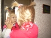 Сегодня Настюшка одела красное платье и мы сделали ей прическу с красными резиночками и красной заколкой, Кирюшке одели красную жилетку.