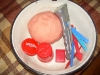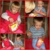 Nadin_85: После дневного сна детки помогали мне делать красную упаковку для подарка на день рождения их любимой крестной. Называли красные предметы в коробочке. Настюша «кормила» Кирюшу красной вилочкой из крас...