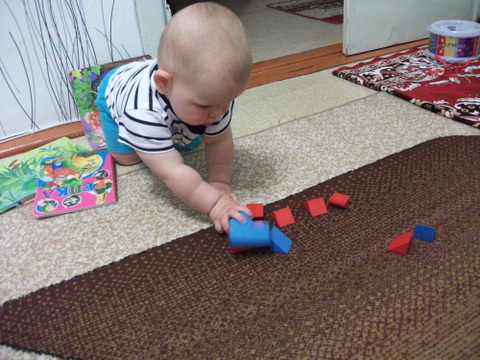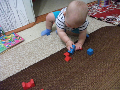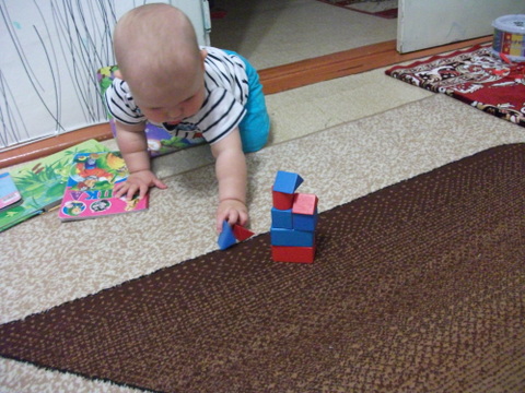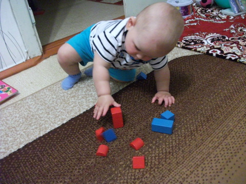 4. С конструктором играть любим. Мама собирает, сыночка разбирает. То же самое с кубиками. Поэтому запечатлеть стоящие башенки никак не получилось, разлетались они быстрее чем строились )))