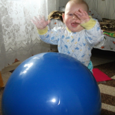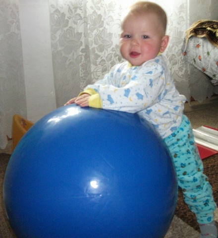 1. Каждое утро занимаемся на большом синем мяче. Особенно любим на нем скакать, а если сказать что так скачет зайка, так радости полные штаны )))