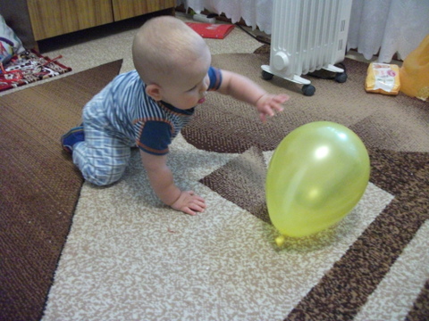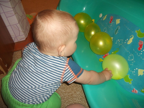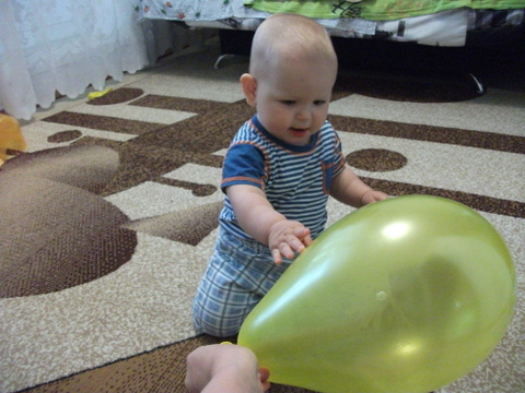 3. Во вторник – шарики. Сначала весело поиграли. Надували, сдували, пускали в свободный полет, издавали смешные звуки.