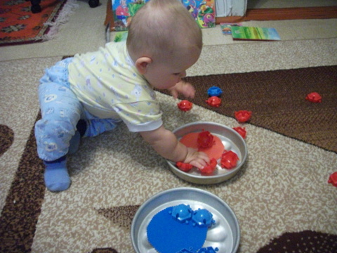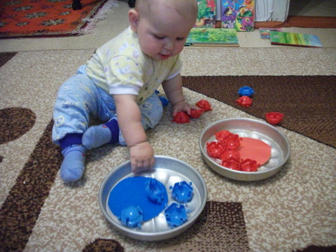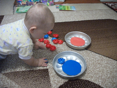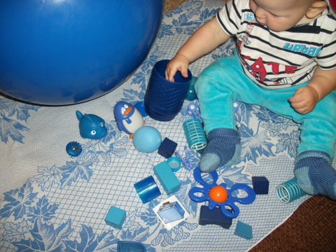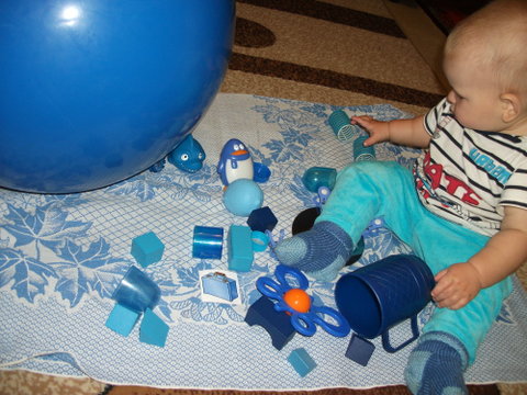 Эту неделю начали с поиска, а затем и перебиранием и игр с предметами синего цвета , найденных дома.