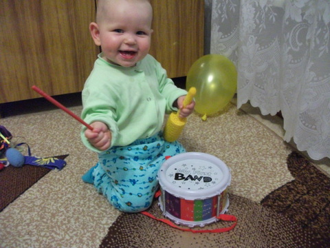 Какой славный карапуз! И уже столько умеет в 10 месяцев! Молодцы.