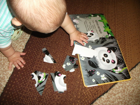 1. Собираем пазл, вернее только учимся )))) Конечно же из нашей любимой книги про цвета. Придерживаемся основной темы Черный и белый цвета