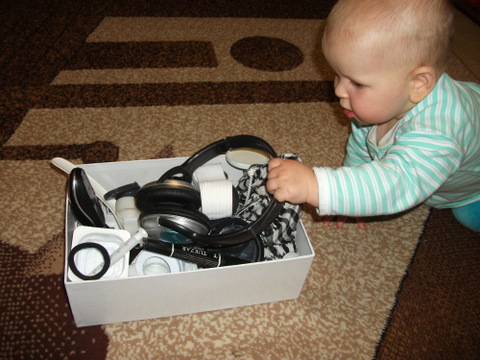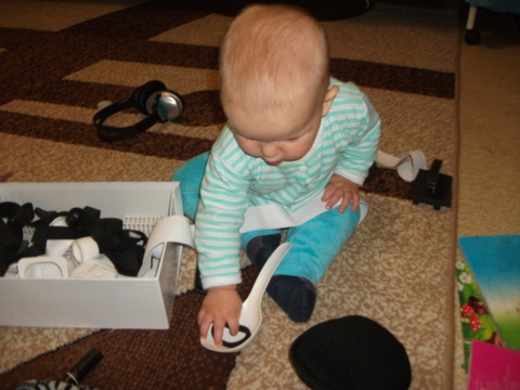 1. Сундук с сокровищами. В нашем случае это коробка с найденными по дому предметами черного и белого цветов. Ну и конечно же фаворитом стала компьютерная мышка ))) кто бы сомневался )))))))
