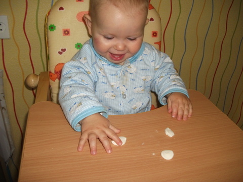 2. Первое знакомство с пластилином. Все прошло отлично, сыночке пластилин понравился даже больше чем соленое тесто ))) В футбол мы играли не одним мячом, а сразу несколькими )))