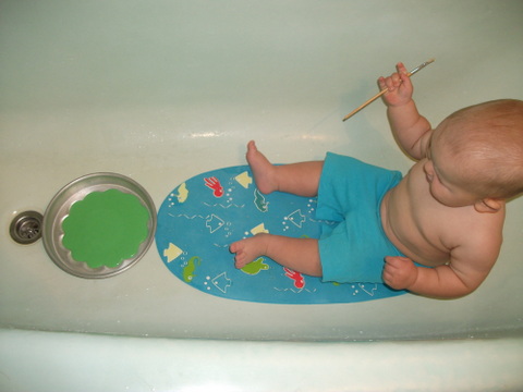 А вот и рисование....Увы, ребенок мой почему-то разрешил себя сфотографировать только при приготовлении к художеству. На этом наше творчество закончилось. Мы попросились вылезти из ванны и пошли заниматься своими делами ))))))))