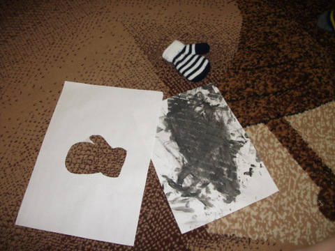 5. Рисование. Это дело нам тоже очень понравилось. Я заранее нанесла полосы свечой, а сыночка разукрашивал страничку ))) А потом у нас появилась варежка ))) Мама зебру вырезать не смогла, поэтому посмотрели, что дома есть полосато-черно-белого и нашли недавно приобретенные рукавички и сделали еще одну про запас ))