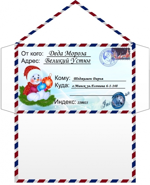 Nadin_85: А можно мне? Хочу такое письмо для племяшки)))) Теджимен Дарья г.Минск ул.Есенина 6-1-148 индекс 220025...
