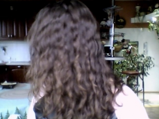 Теперь про меня. Длина волос ниже лопаток -длинные волосы, не крашенные. Состав наносили какой-то итальянский, если я не ошибаюсь. Бигуди был тоненький, мастер убедила,что если толще бигуди взять, то под тяжестью моих волос(длина все-таки) завивка не более 2-х недель бы продержалась. ОООчень быстренько накрутила мои волосы смачивая губкой каждый завиток. 12 минут подержали и смыли........