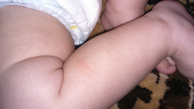 Крем под подгузник не допускает опрелостей в складках и паху, но после ночи потертости-покраснения на нежной попке снова я заметила. Так как процесс от потертостей до повреждения кожи с кровоточащими ранками и язвочками у нас очень быстрый, я сразу же помазала в течение двух смен подгуза нашим ранее используемый средством