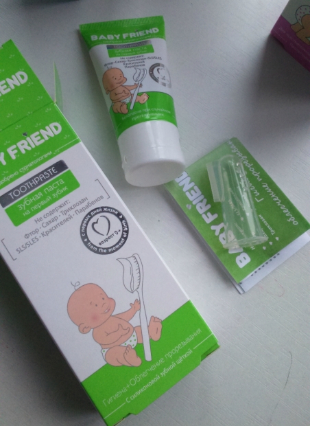 • Паста зубная BABY FRIEND на первый зубик с силиконовой зубной щёткой.