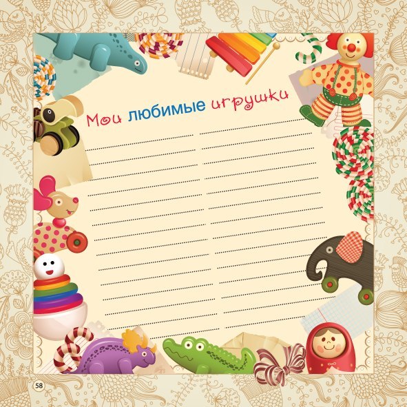 Здесь Вы найдете и странички о детстве папы и мамы. Малышу будет любопытно узнать о ваших детских мечтах и увлечениях, о том, как Вы проводили школьные каникулы и о чем просили Деда Мороза. И многое-многое другое.