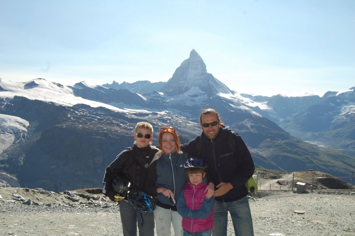 Это семья Тамары (без младшего, он еще не путешествовал тогда) на велопрогулке в Альпах, гора Маттерхорн