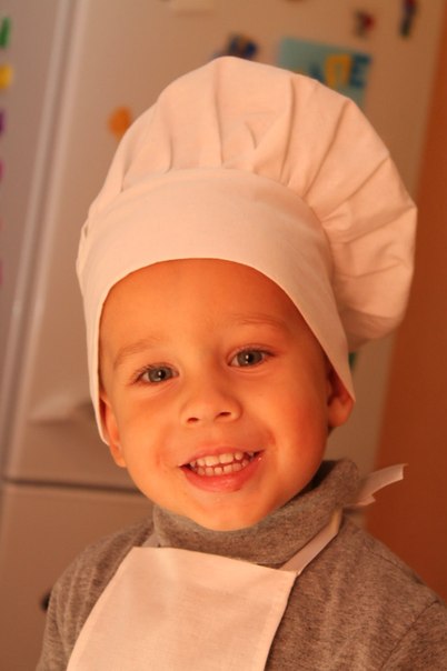 Наш малыш очень любит готовить. Специально даже колпак с фартуком пошила. Без Никиты ни одно блюдо не готовим.