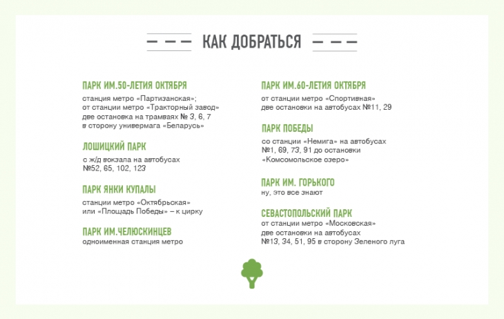 1. Парк им. Горького. 2. Лошицкий парк. 3. Парк Победы