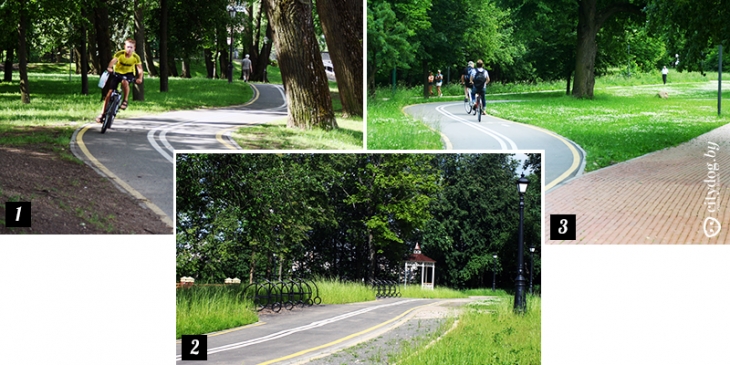 Велодорожка есть в парке им. Горького, парке им. Купалы, парке Победы и Лошицком парке. Правда, иногда это только увеличивает неприязнь между простыми гуляющими и обладателями велосипедов: и те, и те почему-то постоянно забираются на не положенную им часть дороги.