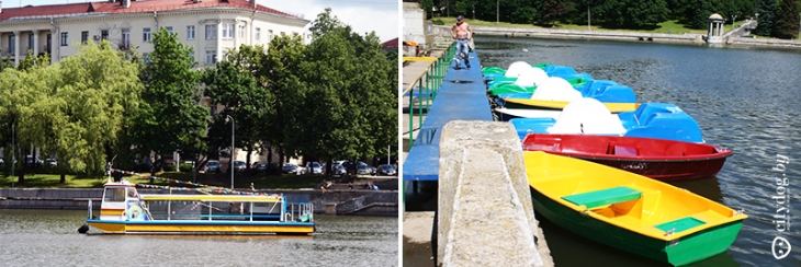 С другой стороны парка, которая ближе к гостинице «Виктория», можно взять катамаран, прогулочную лодку на 4 человека. В парке им. Купалы цены такие же, только там есть еще и 4-местный катамаран.