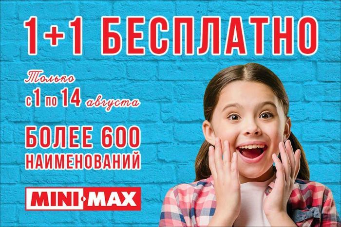 Только с 1 по 14 августа в сети магазинов MINIMAX купи один товар, а второй получи бесплатно!