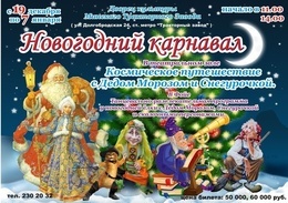 Во Дворце культуры Минского тракторного завода пройдет предновогодний утренник «Космическое путешествие с Дедом Морозом и Снегурочкой» в театральном зале. В фойе каждого участника ожидает танцевально-развлекательная программа возле Новогодней елки-красавицы. Конечно же, будет и встреча с Дедом Морозом, Снегурочкой и сказочными персонажами.