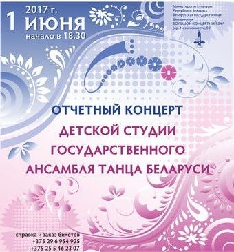 Белгосфилармония приглашает на отчетный концерт детской студии государственного ансамбля танца Беларуси. Пройдет концерт 1 июня в 18.30. Цена билета — 5 рублей.