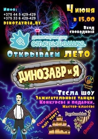 Научное шоу «ОТКРЫВАШКА» и Развлекательный Центр «ДИНОЗАВРиЯ» приглашают всех открыть это лето вместе 4 июня в 15.00.