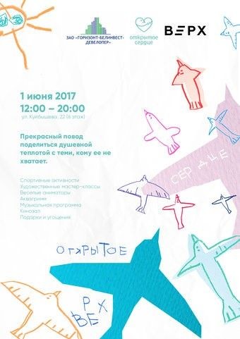 1 июня в Международный день защиты детей в Минске состоится благотворительный проект «Открытое сердце» — прекрасный повод поделиться своей душевной теплотой с теми, кому ее не хватает. Около 300 воспитанников детских домов соберет открытое пространство «ВЕРХ» совместно с «ЗАО “Горизонт-Белинвест-Девелопер”»