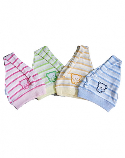 Эти шапочки закрывают уши и лоб. Зимой их можно носить дома, а летом надевать малышу на прогулку. Трех шапочек хватит, как для зимы, так и для лета.