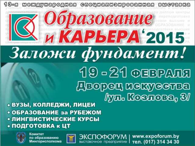 Выставка «Образование и карьера» проводится Комитетом по образованию Мингорисполкома и выставочным предприятием «Экспофорум». В 2014 году в проекте были задействованы 143 участника, среди которых ведущие вузы Республики Беларусь, России, Дальнего зарубежья, учреждения среднего профессионального образования, международные образовательные центры и курсы иностранных языков. За три дня работы выставку посетило около 10 000 чел. Среди них учащиеся выпускных классов с родителями, абитуриенты, студенты, молодые специалисты.