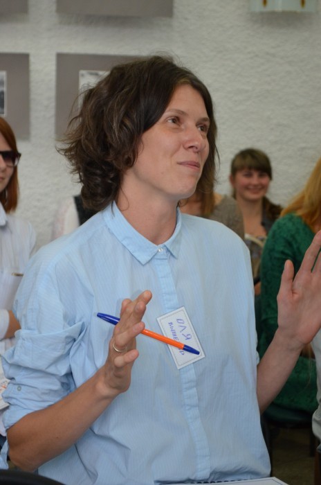 Татьяна из Минска пришла на встречу со своим общественным проектом Эко-дружный подъезд, который заключается в поиске лучших решений подъездов многоквартирных домой и дворовых территорий (безопасность, экологичность, удобство, красота и творчество).
