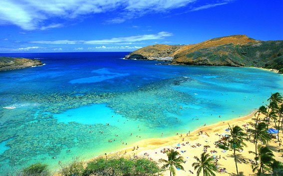 Попали на живописный пляж: необычные скалы, пальмы над водой, белый песок, видно дельфинов и любителей серфинга.